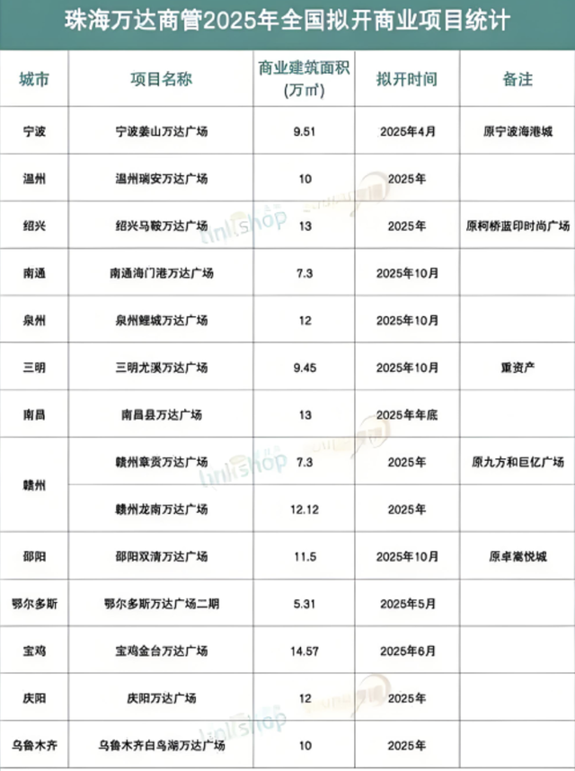 ▲2025年已开或将要开放的万达广场(部分) 来源:网络