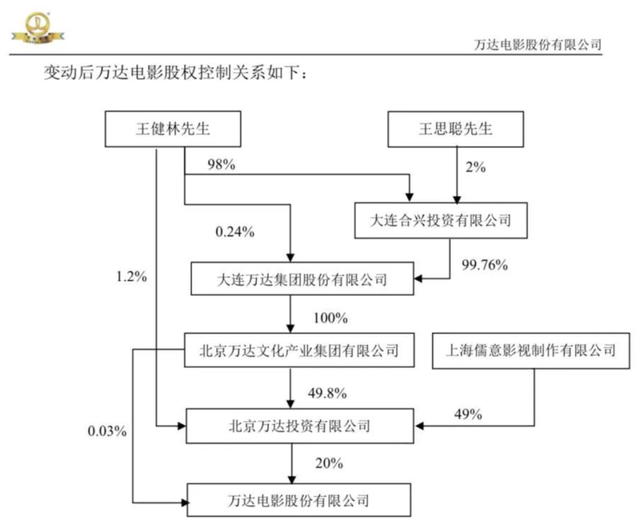 ▲儒意收购后万达电影股权控制关系 来源:万达电影《关于间接控股股东权益变动的提示性公告》