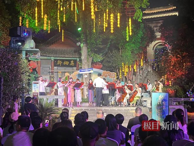 优秀的演奏家们依托禹柏轩、晴川阁主楼等实景场地,以月光为意象、以音乐诗歌为脉络,带来18首经典曲目及诗歌朗诵。从《花好月圆》的婉转悠扬到《月满西楼》的柔情缱绻,从《但愿人长久》的隽永绵长到《夜来香》的清新灵动,引得台下市民游客听得如痴如醉。