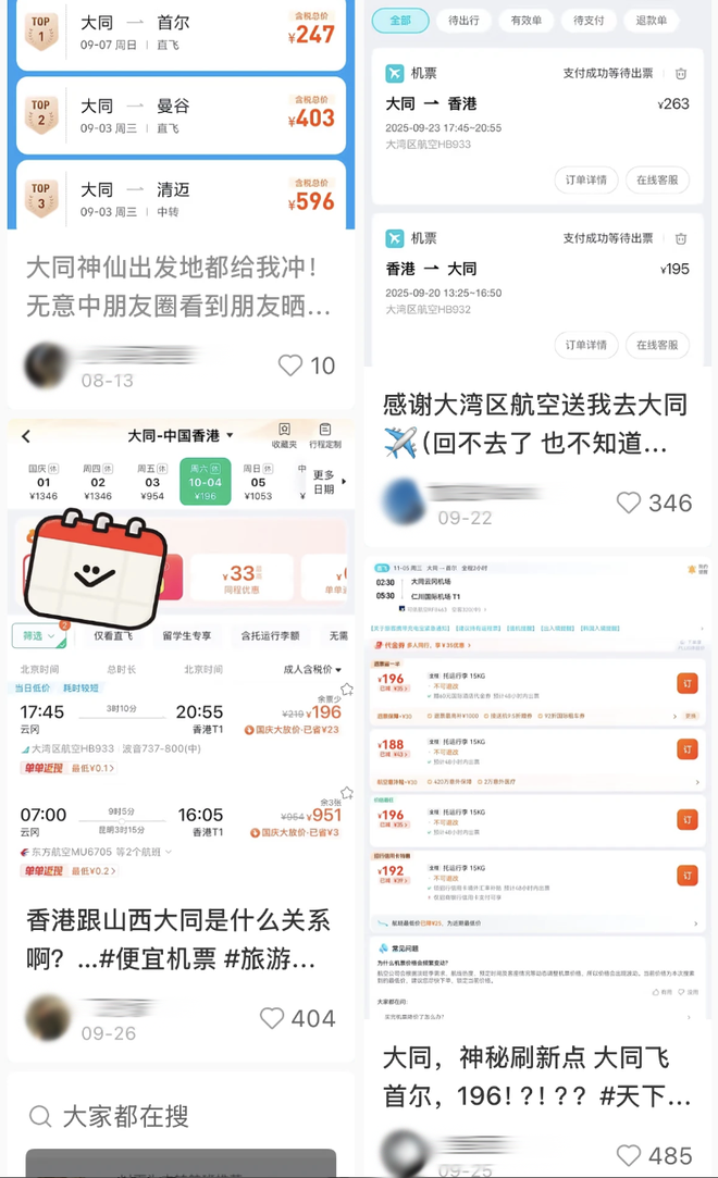 中转大同玩世界比你国庆飞国内的机票都便宜,眼看着北京牛马和太原人都赶往这山西小城,有网友调侃,“大同,才是山西省真正的大都市。”