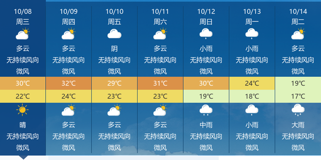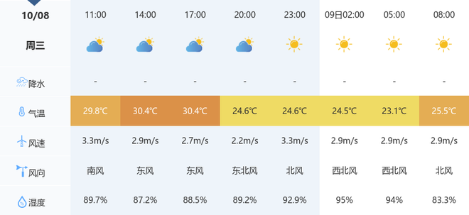 未来三天,宜昌天气以多云到阴为主,其中10月10日有阴天出现,气温波动在23℃至32℃之间,最高气温出现在9日和10日,风力持续为微风。近期气温较高且湿度较大,体感闷热,公众需注意调节作息,减少正午时段户外停留时间。