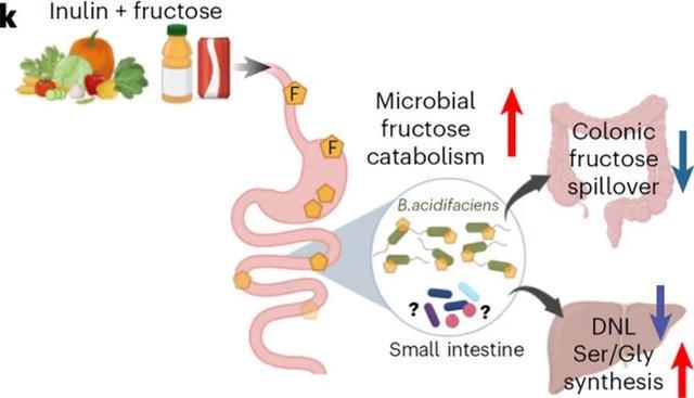研究团队通过分析发现,菊粉能刺激小肠肠道菌群分解饮食中的果糖,有效减少果糖进入结肠和肝脏。这一过程不仅抑制了肝脏脂肪合成,而且增强了肝脏合成谷胱甘肽等抗氧化物质的能力,有助于防止脂肪堆积及氧化应激造成的损伤。