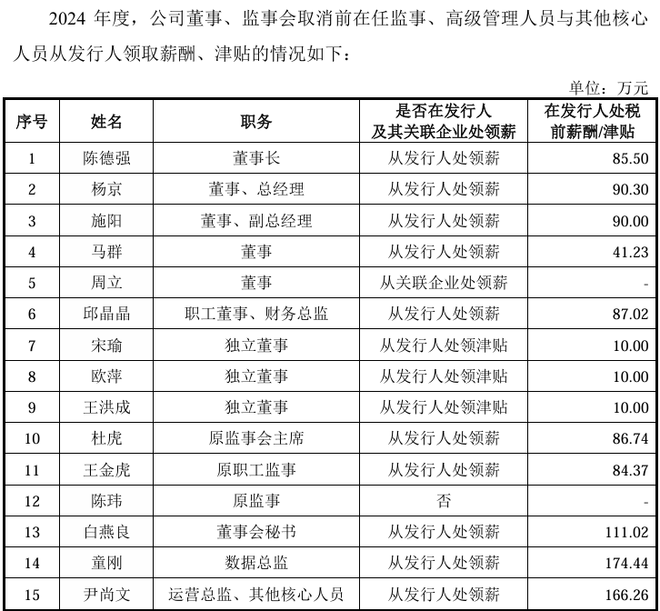 从核心高管上看,企查查的收入水平也显得并无竞争力。前三号人物董事长陈德强、总经理杨京和副总经理施阳2024年领取收入均不足百万,收入最高的数据总监童刚2024年收入为174.44万元。
