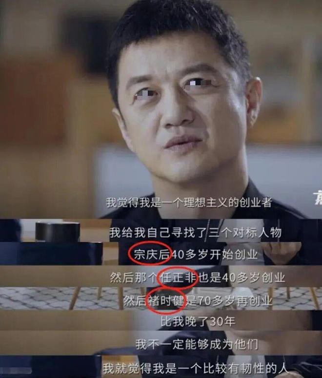 他把自己对标成“宗庆后、褚时健”这种级别的企业家,认为只要有毅力和韧性,40岁以后创业依旧不晚,照样可以成功。
