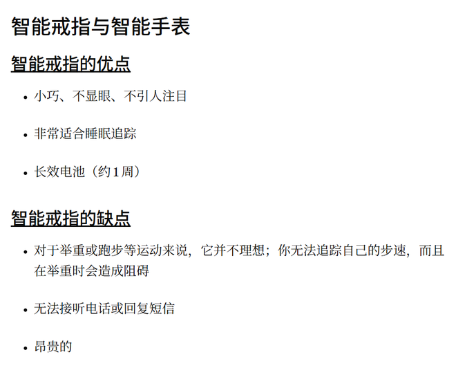比起智能手表,智能戒指的优势被总结为“续航时间更长”、“睡觉不用摘”,更轻更小更无感,适合“想知道自己睡觉时的详细身体数据,又不想睡觉的时候戴智能手表的人”。