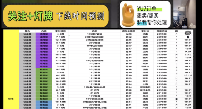 曾一度溢价上万元甚至叫到2万元的订单转让,如今却普遍折价。多位车商称,小米SU7订单回收价已跌至约1500元,YU7在2000—3000元左右,早期交5000元订金者转手即亏约3000元;就算2000元的回收价,也要花时间找买家。
