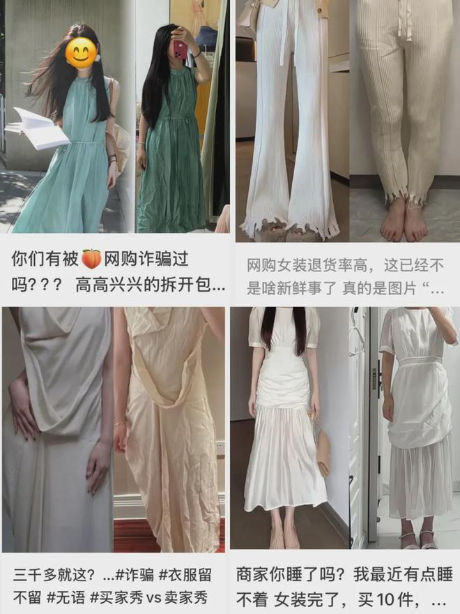 “所见即所得”,本应该只是电商服装应该做到的基础,现在却变成了很多消费者们的奢望。一次次退货退到厌倦的网友们,发现怎么也躲不开商家的千层套路,只想在又一次网购翻车后无奈狂怒: