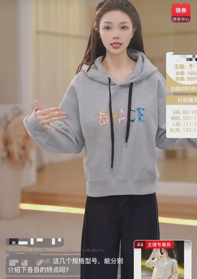 在某品牌女装直播间,观众在公屏提问:“身高165穿什么码?”,AI主播会回复:“宝子可以考虑m码哦,具体看体重哈,详情页有尺码表可以看看。”