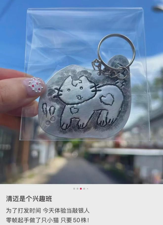 沪漂陈默调侃说自己是在上海敲键盘,来清迈敲银子,但是前者是焦虑,后者是放松,“当银丝在指尖缠绕成戒圈,我才悟了,治愈精神内耗的,不是升职加薪,而是专注打银的3个小时。”