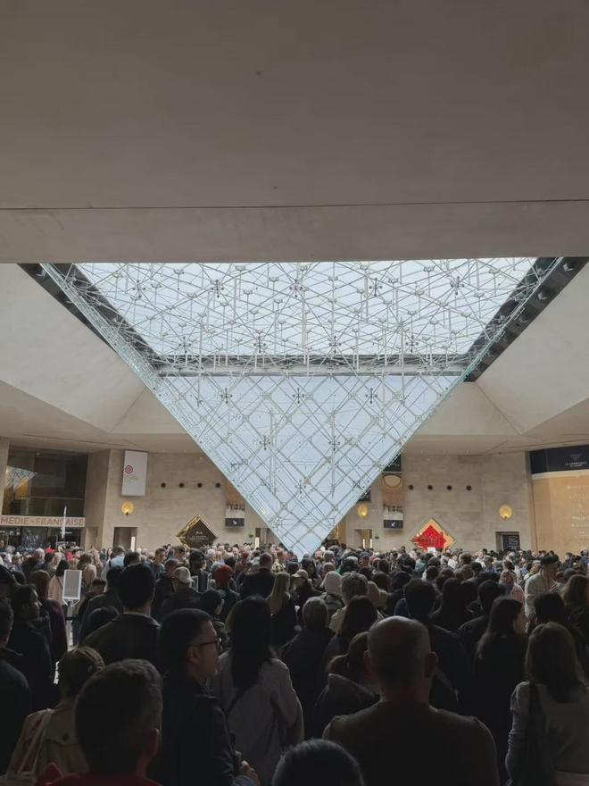 网友@凡 表示,自己早上九点十分到达卢浮宫,然后一直在排队等待进馆,“入口卡了很久不动”。