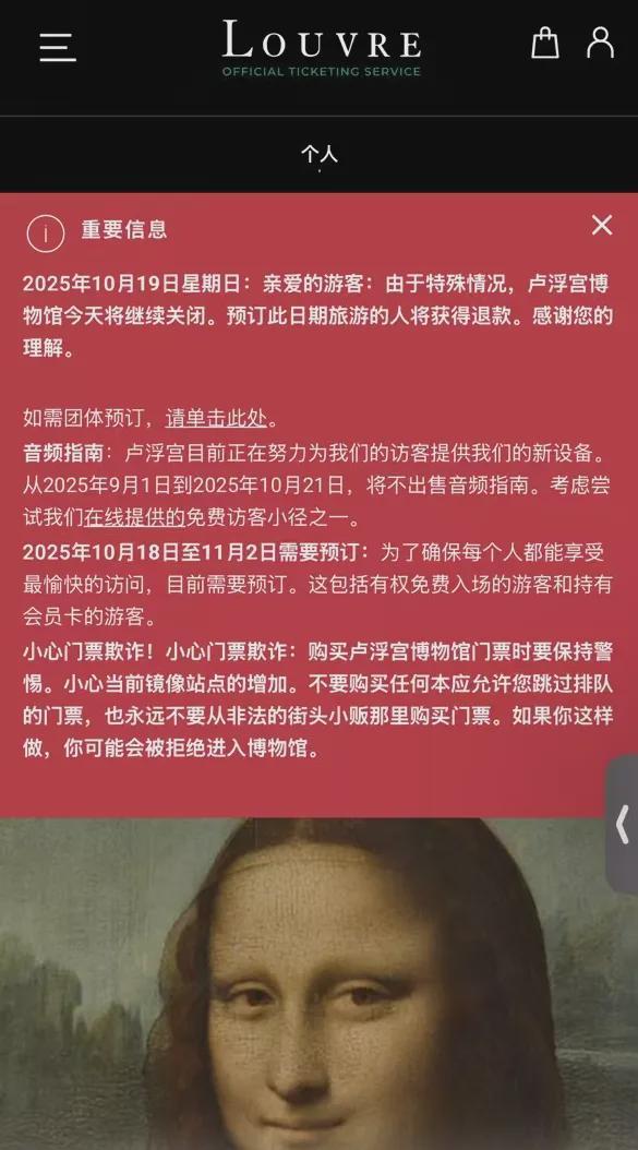 卢浮宫博物馆发布消息称,由于特殊原因,博物馆当天将暂停对外开放。