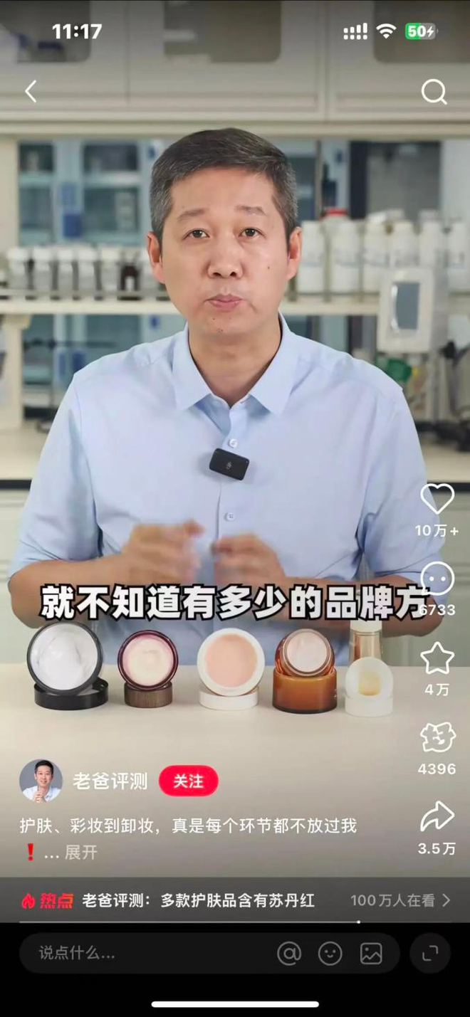 10月20日,第三方测评机构“老爸评测”发布视频称,“在多款大牌护肤品中检出禁用20年的成分苏丹红”。
