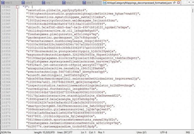 如上图所示(如果您理解 JSON 文件中实际发生的情况),Windows 存储了一个静态类别,该类别将几乎所有 Microsoft Store 软件包系列名称链接到一个代表类别的整数。此功能已压缩,但一旦解压缩,您将获得 15MB 的 JSON 文件。