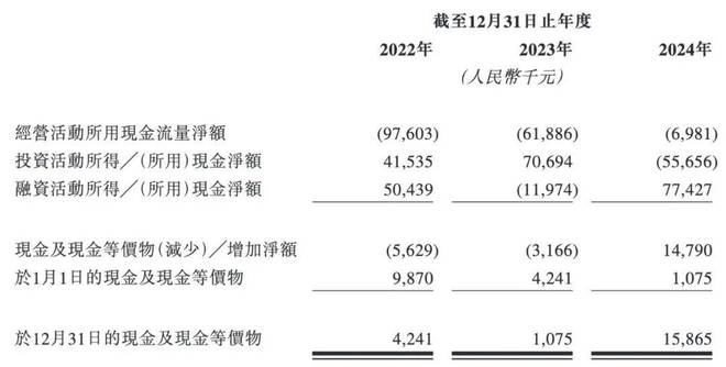 招股书披露,承泰科技在报告期内的经营现金流连续3年为负,分别为-9760.3万元、-6188.6万元及-698.1万元,3年累计约-1.66亿元。公司的生存依赖"外部输血",2024年的融资流入7742.7万元。