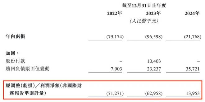经调整净利润(非国际财务报告准则计量)分别为-7127.1万元、-6295.8万元及1395.3万元。可见,2024年经调整净利润已经扭亏为盈。