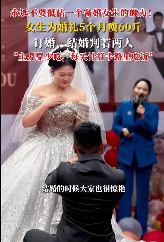 10月31日,安徽宿州一女生为婚礼5个月瘦60斤,订婚、结婚判若两人。