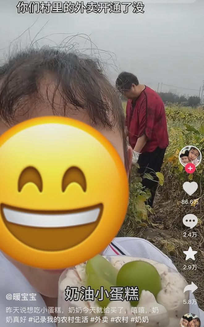 最近,网友@暖宝宝 发布了一条视频。她站在庄稼地里,身后是正在干农活的奶奶,开心地和网友分享:“我们村能点外卖了!这是奶奶9块9给我点的奶油小蛋糕。”