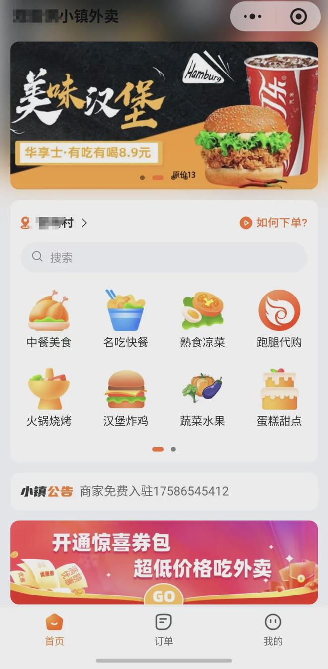 而刘君君使用的外卖小程序,虽然平台小,但服务种类更多。除了餐饮配送,小程序还入驻了镇上的超市,可以买水果蔬菜日用品,现在又陆陆续续上线了快递代取、加急代购等服务。