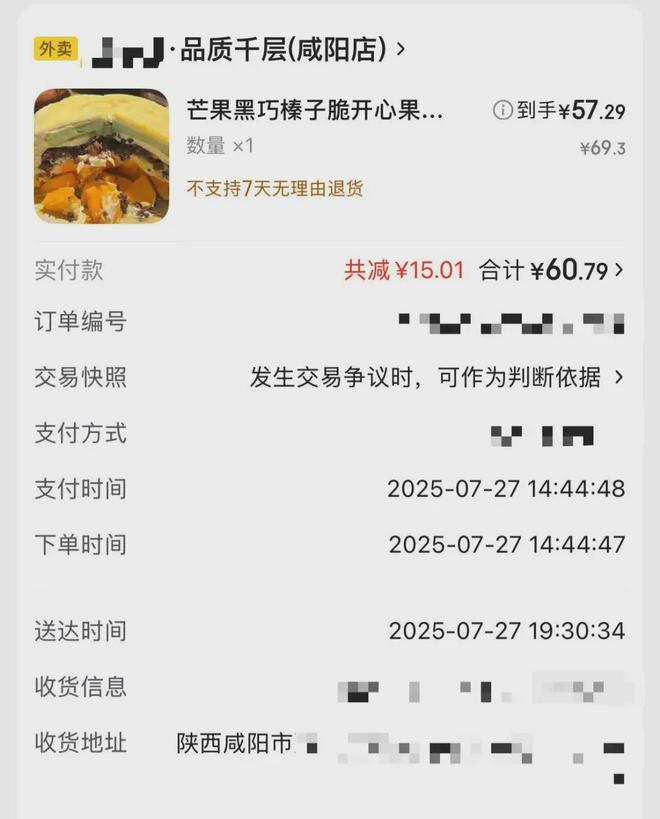 好在外卖员虽然姗姗来迟,但蛋糕包装完好,还配备了冰袋,全须全尾地安全抵达村口。
