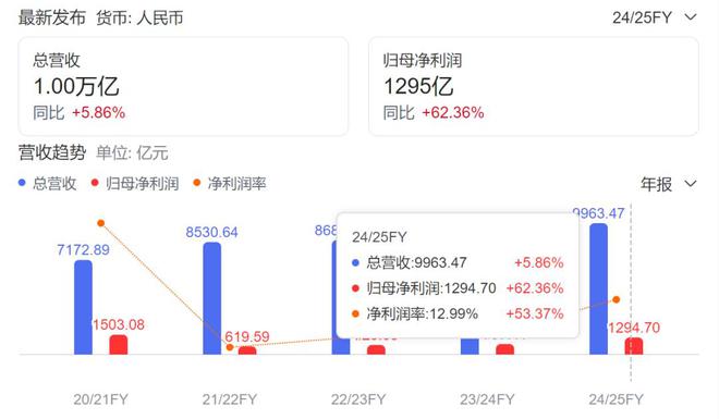 6月26日阿里巴巴(以下简称阿里)集团发布2025财年年报,财报显示,2025财年阿里营收9963.47亿元,同比增长5.86%,净利润同比增长62.4%至1259.76亿元。