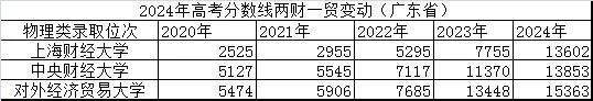 就拿广东来说吧,上海财经大学去年的物理类录取最低位次是13602名,去年是7755名,2022年是5295名,5年前则是2525