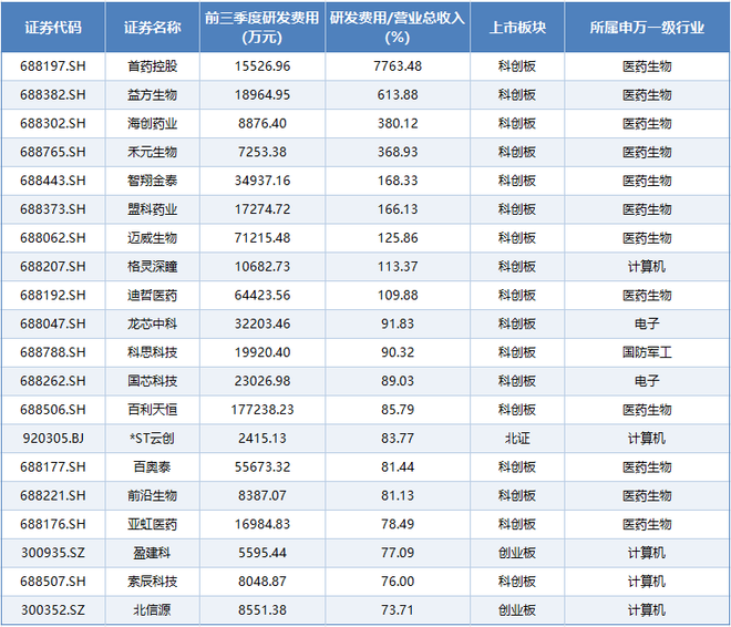 前三季度研发投入超万亿,科创板企业领跑,研发投入达百亿元级企业达168家