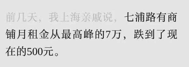 而最近我们收到一则消息:上海七浦路的商铺从月租金最高峰的7万,跌到了现在500元