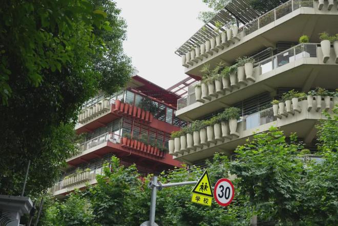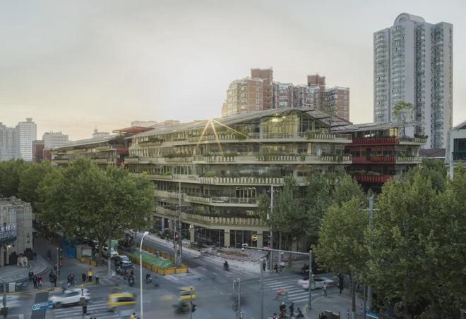 建筑大胆采用的2500个花盆灵感则来自当年上海里弄人们喜欢在阳台种植鲜花,立面选用的色彩也自然而然与街景融为一体