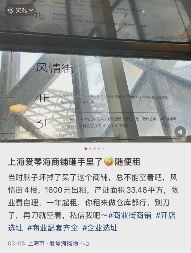 在小红书上我看到的消息确实如此,部分业主已经将闲置商铺出租,30多平的产证面积,每月仅收取1600元的租金和500元的物业费