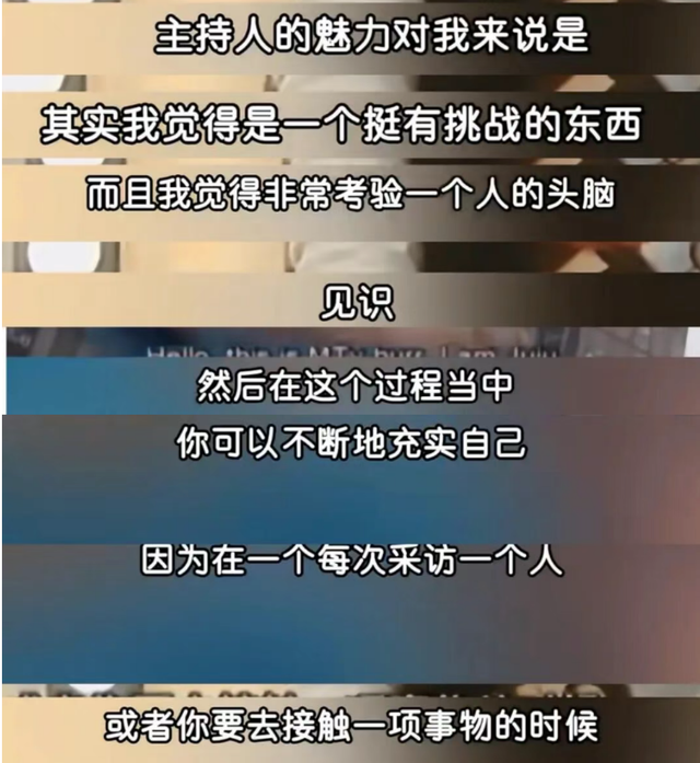 好巧的是,朱珠也是主持人出身,她曾在采访中说过,主持人的魅力对她而言,是一个挺有挑战的东西,非常考验一个人的头脑、见识。