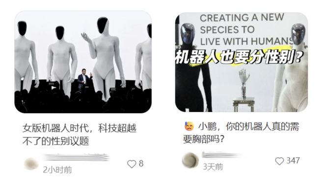 除了硬件和软件上的难题,人形机器人要获得市场接受也绕不开一些技术之外的问题。社交媒体上对于小鹏IRON机器人的讨论,就从最初的“太像人”,逐渐转移到了“为什么要这么像女人”?