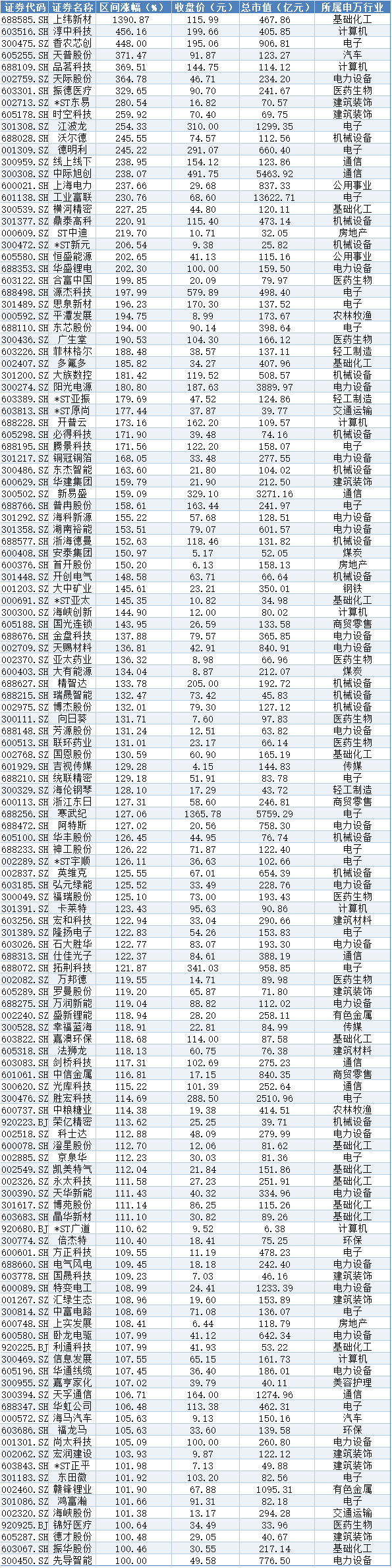 其中,上纬新材自7月9日正式启动,连续收获10个20CM涨停,随后继续走高。至9月25日,累计涨幅已达到1597.94%,股价由7.78元/股最高涨至132.1元/股。