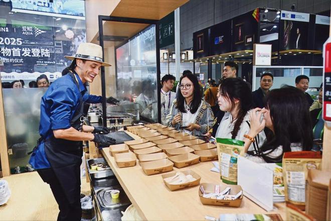 从巴西马托格罗索州空运过来的MT牛排和厨师,现场制作“进博快乐餐”,一大块牛排、薯条和可乐,馋坏了在进博会日行2万步的老外和老内。