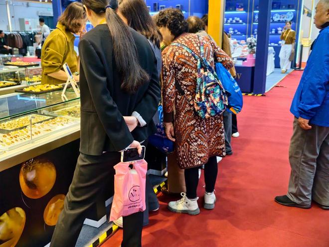 上海爷奶展现出惊人的“钞能力”,各种皮草、珠宝展位都是爷奶们的天下,看上就买,直接寄到家门口。