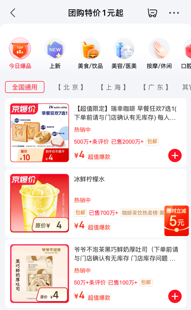 京东最近在团购区搞起了“1元购”。活动力度堪比外卖大战刚开始,把瑞幸的网红贝果价格打到了1元,却没宣传没声张,连领券入口都藏得极深。