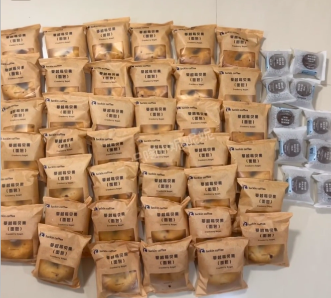 于是5月开始,京东团购成了打工人的“1元贝果批发区”:每天在京东下单一个1块钱的瑞幸贝果团购券,攒到14个二维码,去附近的瑞幸一口气兑换,再拿回冰箱囤起来,就完成了史诗级“羊毛最大化”的创举。