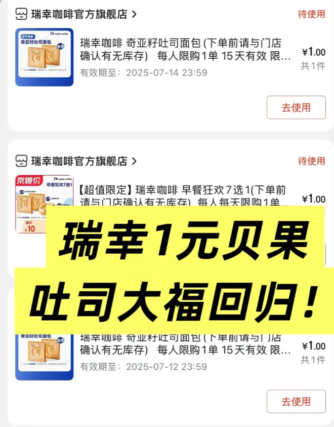 而不少人反映的“1元贝果消失后又上架”,可能单纯只是因为,第一波优惠券发完了。