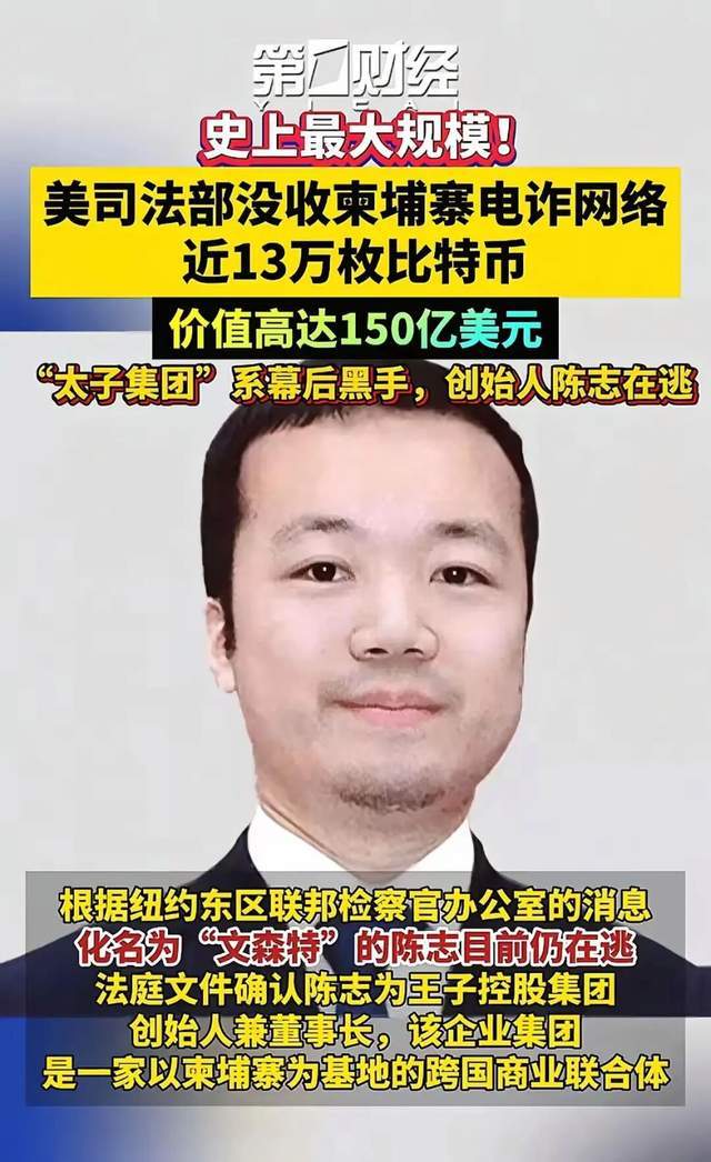 “柬埔寨赌场大亨”陈志名下的12.7万枚比特币被全部冻结,创下司法史上最大金额的数字资产没收纪录。
