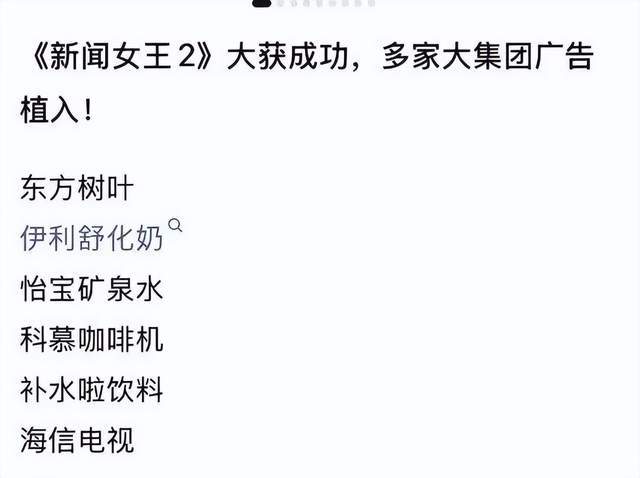 网友算了一下,《新闻女王2》前4集,一共有6家品牌出现在广告植入中,而且植入得非常刻意。第一集一共43分钟,有广告嫌疑的画面出现了超过10次,观众平均每隔4分钟就要“被迫”看一下品牌露出。