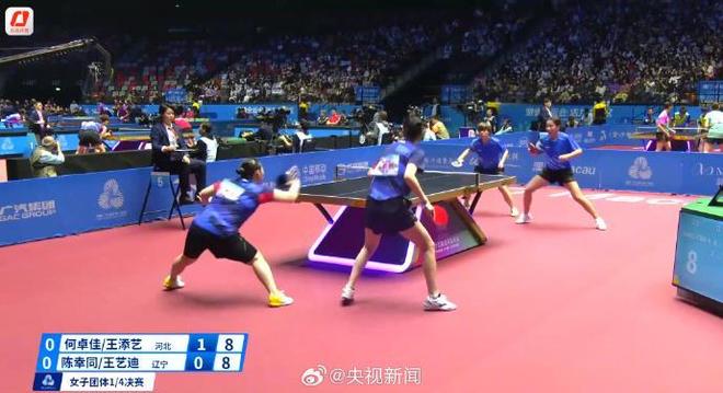 第十五届全运会乒乓球女团1/4决赛,孙颖莎、何卓佳、王添艺所在的河北队战胜陈幸同、王艺迪、刘斐所在的辽宁队,晋级半决赛。