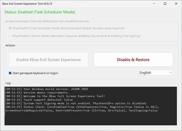 普通用户测试全屏体验主要有两种方式:官方方法要求加入 Xbox 或 Windows Insider 计划(需通过安装 Insider Hub 或注册 Insider Program),并在更新推送后使用 Windows Insider 功能反馈中心进行体验。另一种非官方方式则是通过 GitHub 下载 Xbox Full Screen Experience Tool 工具,适用于 Windows 11 24H2 或 25H2 版本及配备手柄的设备。开发者提醒,该工具会对系统进行深度修改,使用前应备份系统以防需重装,且在使用显示器或电视时需手动调整屏幕参数。