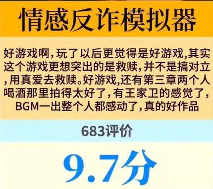 而之后,官方偷偷删除了全程联网,放开盗版限制,并于26日官宣续作,更是让游戏半步封神。至此,《情感反诈模拟器》已成为入门圣经,虎扑评价9.7。