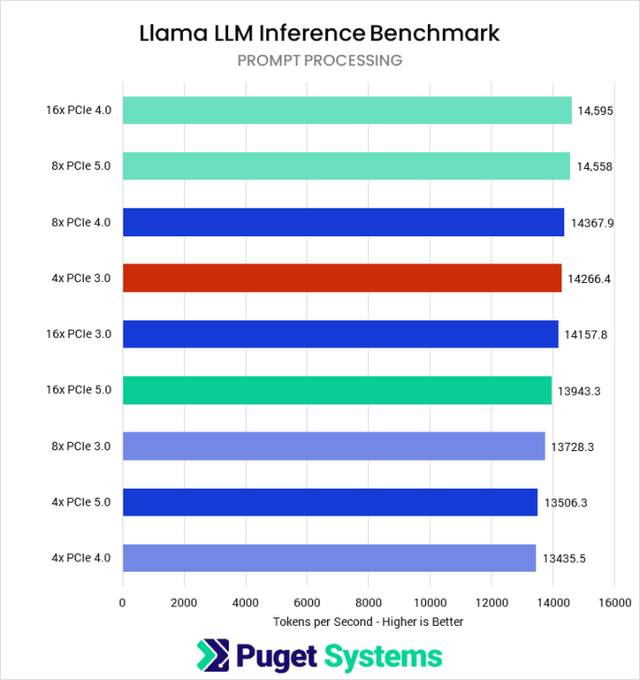 在游戏开发基准测试中,尤其是在虚幻引擎上,几乎所有 PCIe 配置的性能都几乎没有变化。对于 AI 工作负载(例如Llama.cpp基准测试)也是如此,当分配给板载 GPU 的 PCIe 带宽较低时,性能并未受到影响。性能下降幅度不大的原因是这些应用程序更依赖于 GPU 显存。虽然普通消费者不必过多担心 PCIe 带宽,但专业人士,尤其是内容创作者,应该对此有所顾虑。