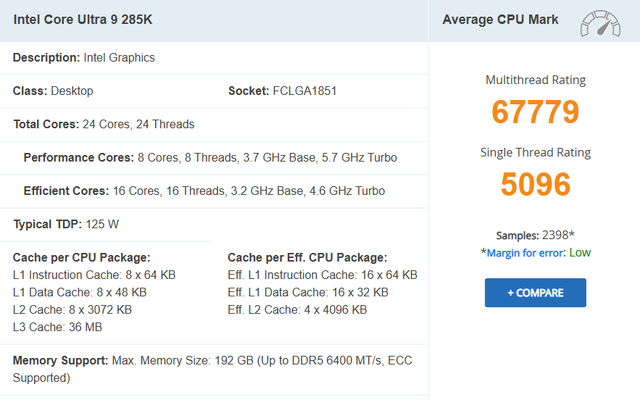 请记住,这两款 CPU 的核心/线程配置和 TDP 额定值相同,但由于采用了更新的 Zen 5 架构和更快的时钟频率,9980X 的性能可以比其前代产品有显著提升。话虽如此,请记住,PassMark 分数在不同测试中可能存在很大差异,而且随着测试次数的增加,分数通常会变得更加准确。