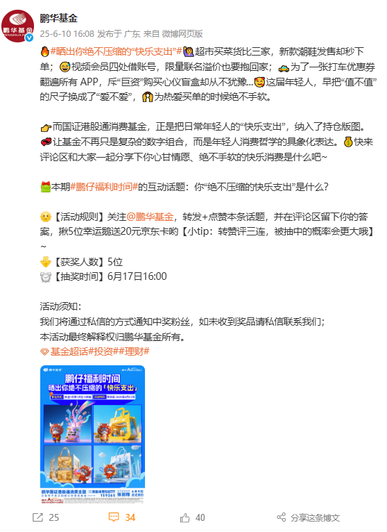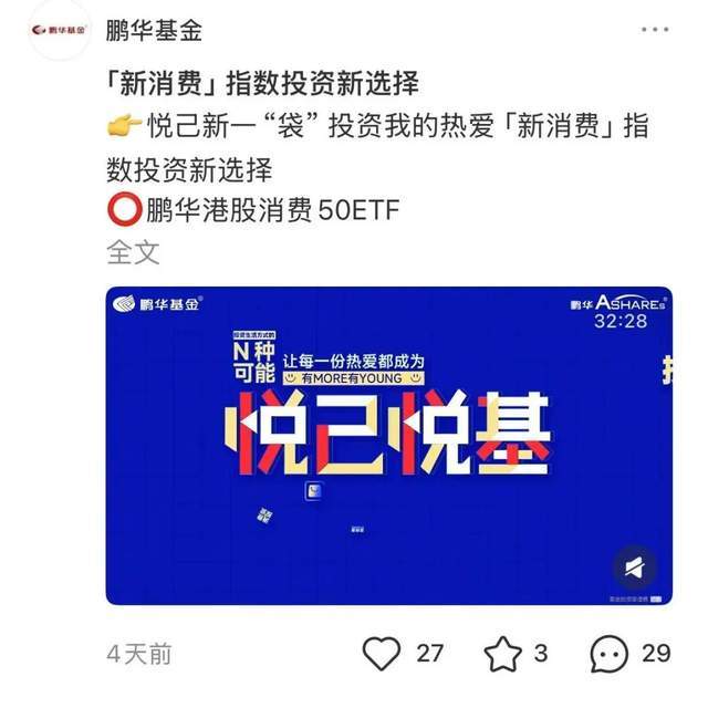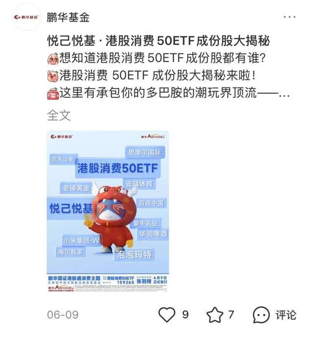 同时,我们也在微博发布了「悦己悦基・港股消费50ETF」相关博文,引发微博投资者关注和讨论。
