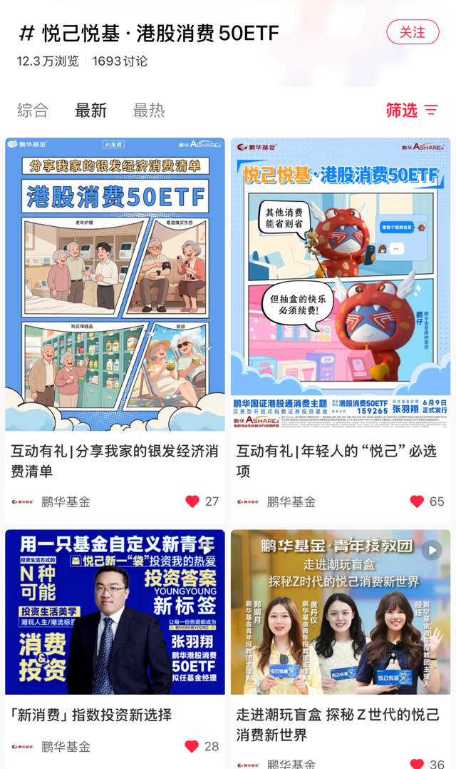在宣传期间,「悦己悦基・港股消费50ETF」小红书话题浏览量达12万,讨论量1500+。投资者积极参与,交流对港股消费50ETF的看法与见解。