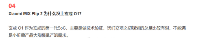 小米MIX Flip 2为何没搭载玄戒O1?小米回应:没有规划