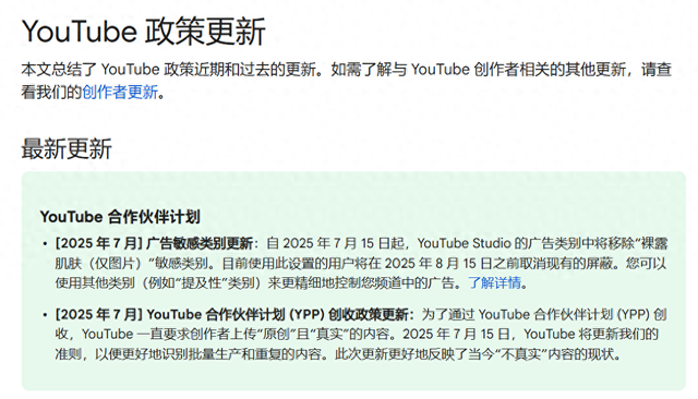 在周二发布的视频更新中,里奇表示,这一变化只是对 YouTube 长期以来的 YPP 政策的“小更新”,旨在更好地识别内容何时是批量生产或重复的。