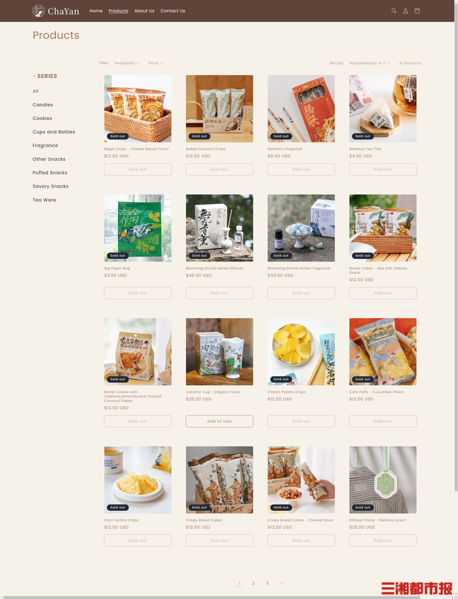 首批上线的产品近40个,涵盖零食、茶具、晶石香氛等文创周边,产品口味与包装沿用国内版本,定价则依据北美市场行情进行调整。需要注意的是,其所售商品并不包括主打产品茶饮。