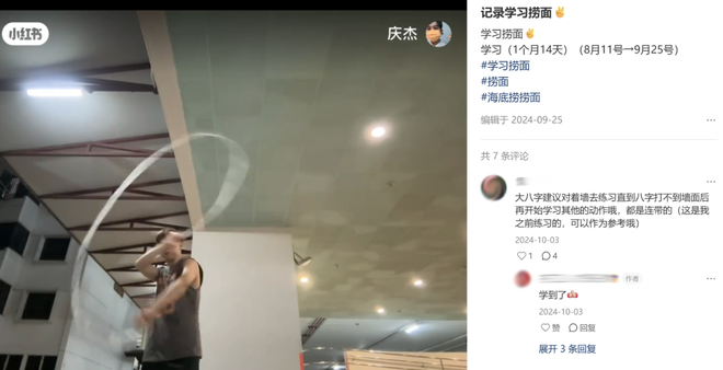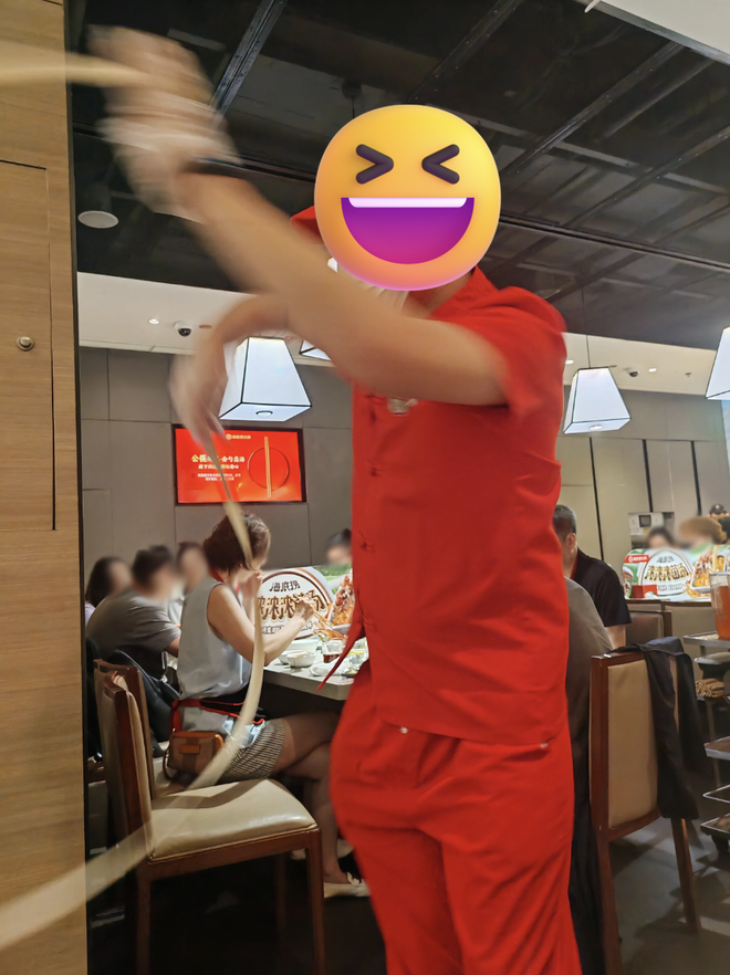 这并非主动选择,而是因门店捞面师离职临时顶岗。起初他只是照着动作模仿,但随着机会增多,他开始反复琢磨每个动作的节奏感与表演张力,逐渐形成自己的风格。